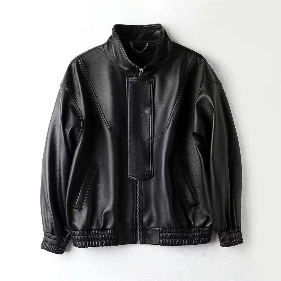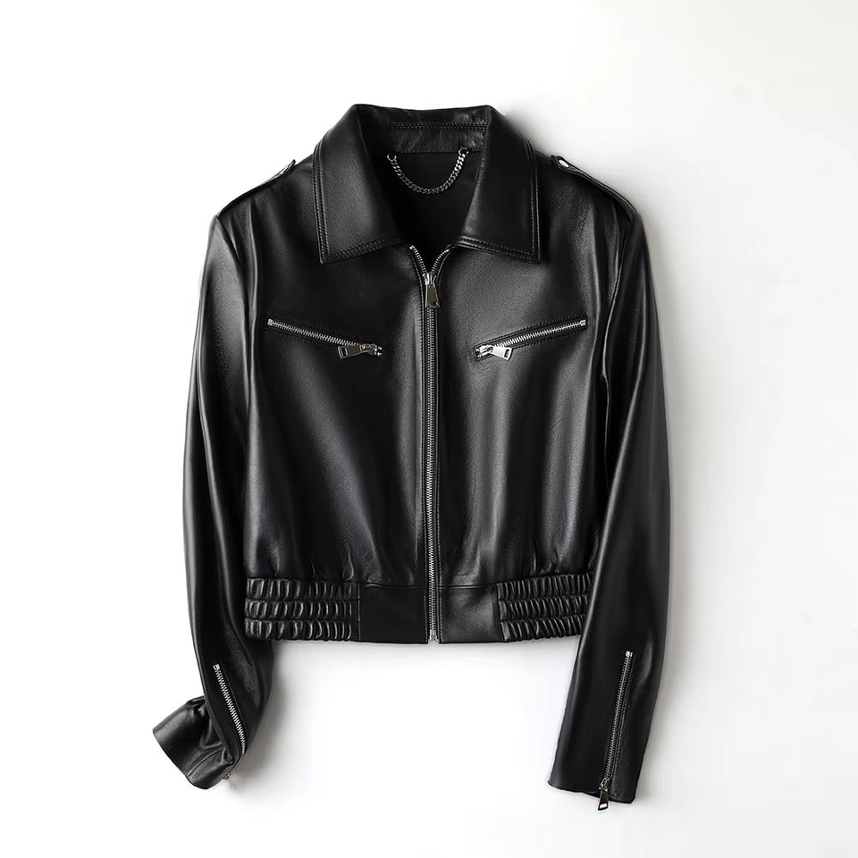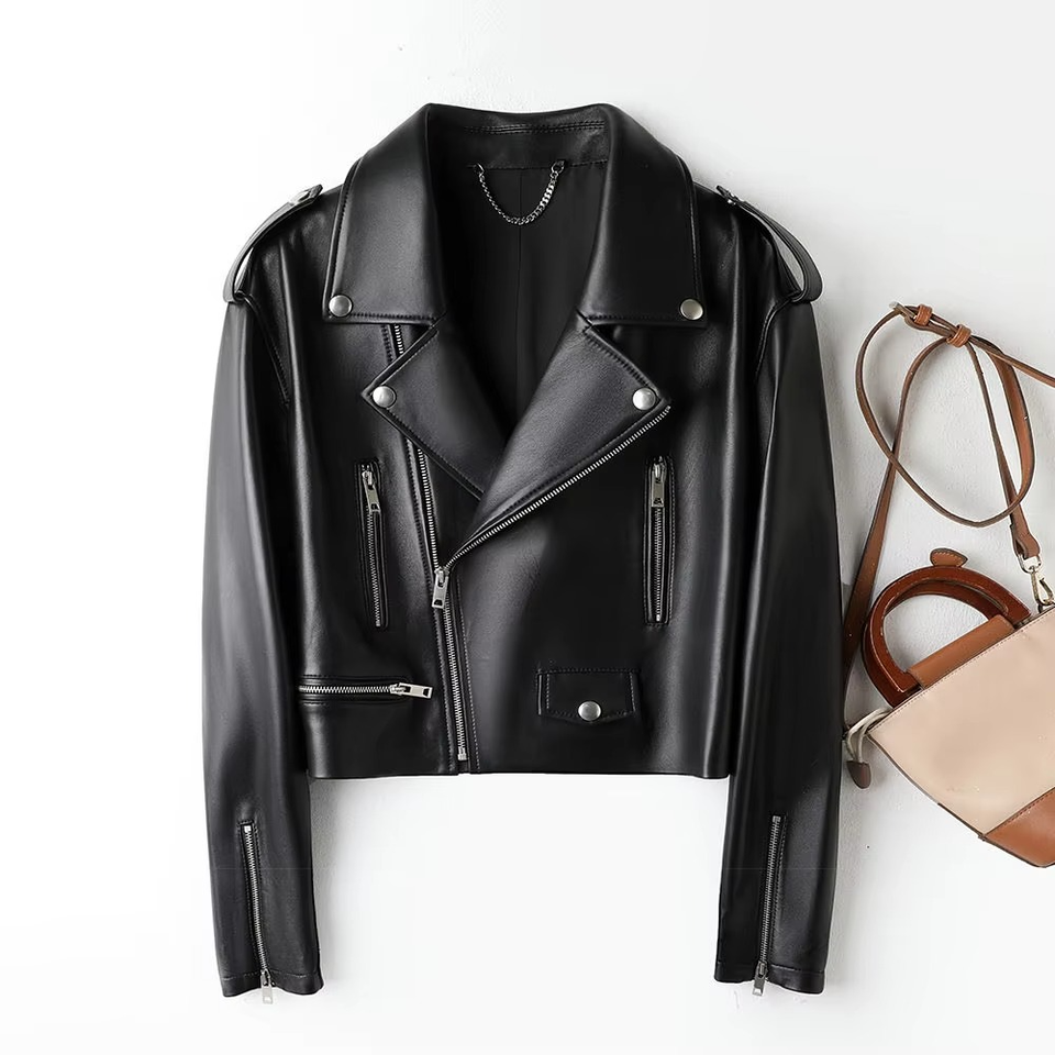 Chaquetas de Motociclista de Cuero Genuino de Diseño de Lujo para Mujer, Corte Entallado, Largo Regular, Herrajes Dorados, Transpirables y Resistentes al Viento