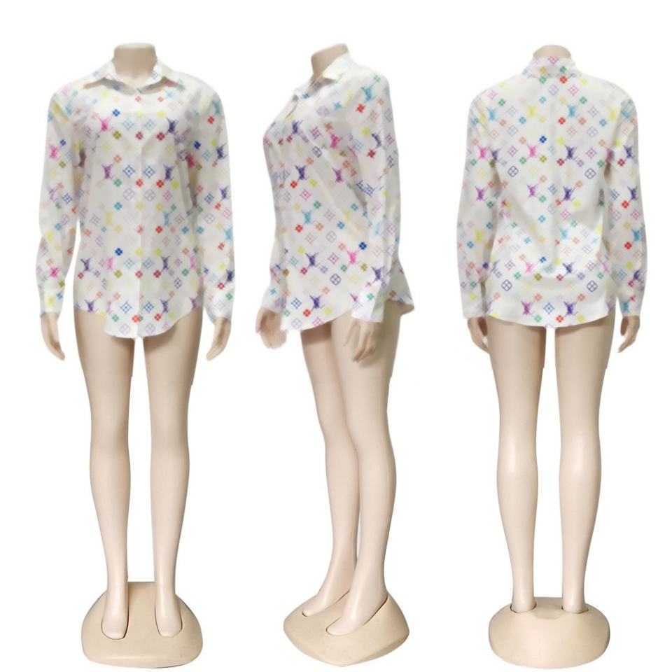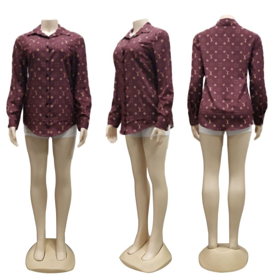 Blusa de Diseñador de Lujo con Estampado y Botones, Moda Otoñal, Mangas Largas, Cuello Camisero, Casual, Transpirable, Marcas Famosas