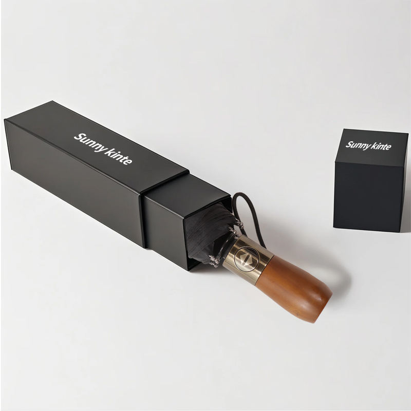 Paraguas de estilo de diseñador de lujo con apertura automática, elegante mango de madera, moda de gama alta, protección UV a prueba de viento, regalo de negocios para hombres