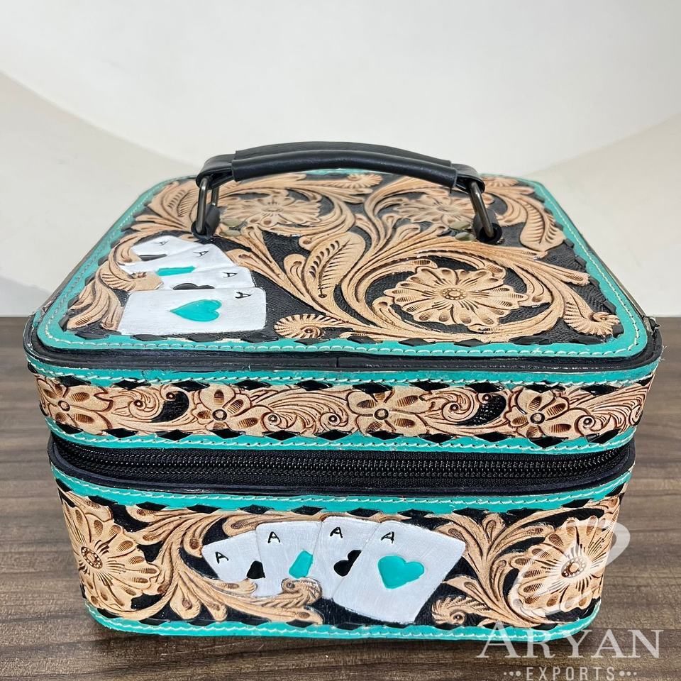 Nombre del Producto:Estuche grande para joyas de cuero de vaca trabajado a mano