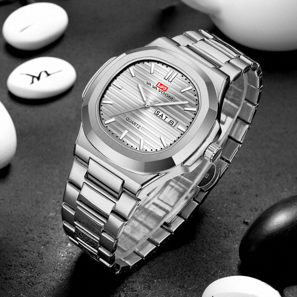 Reloj de Lujo de Diseño Bicolor Dorado para Hombre, Esfera con Rayas, Reloj de Pulsera de Cuarzo con Fecha y Día de la Semana, Reloj de Negocios Premium