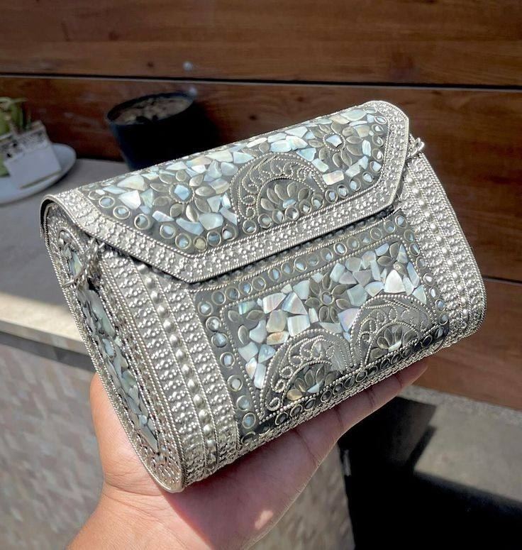 Bolso de hombro de metal hecho a mano con diseños de lujo con correa de cadena desmontable embrague de noche para damas uso para fiesta