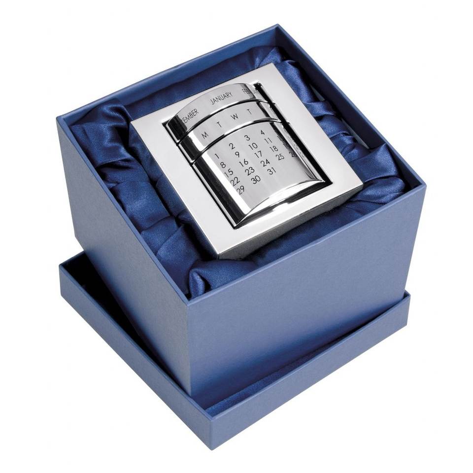 Calendario de Escritorio de Lujo en Caja con Diseño en Espiral, 80x90 mm, Visualización Mensual Permanente