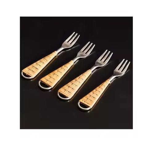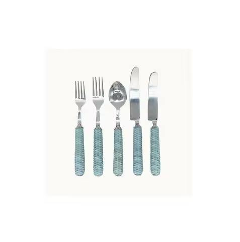 Juego de cubiertos de comedor de lujo con mango de ratán Cubiertos de metal de acero inoxidable pulido para uso doméstico y de fiesta