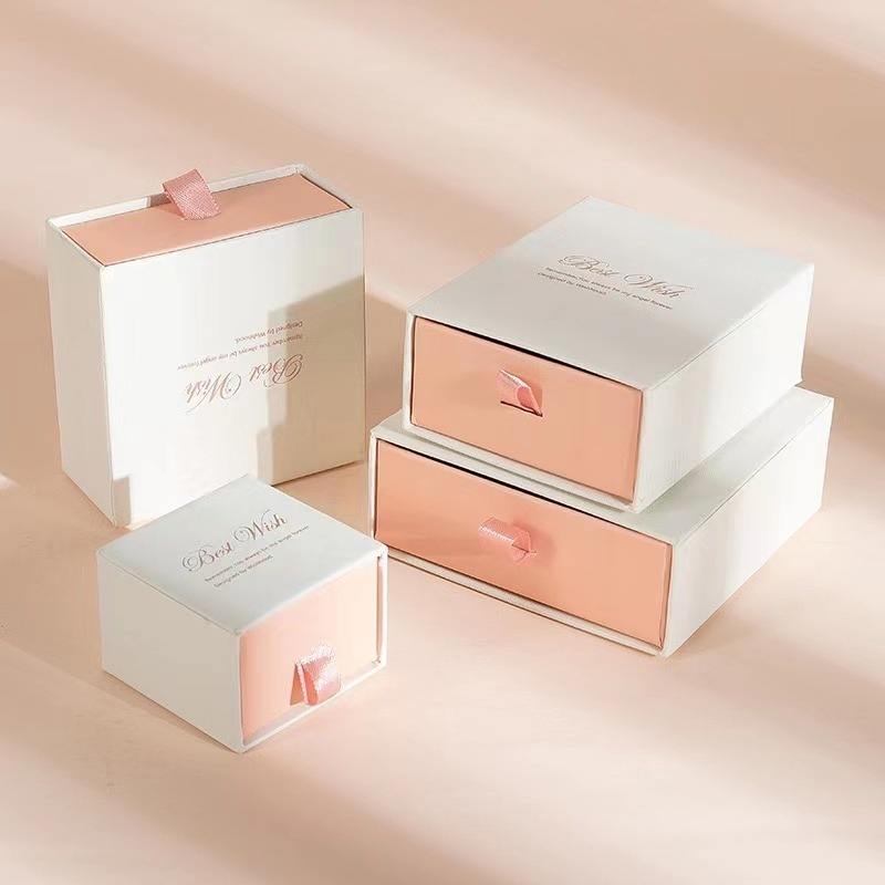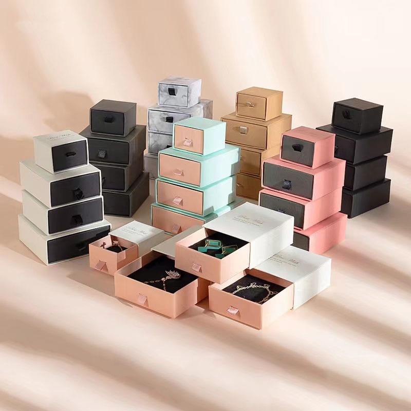 Caja de Joyería de Lujo con Cajón, Papel de Regalo, Cartón, Logotipo Personalizado Impreso, para Pulseras, Pendientes, Collares y Anillos