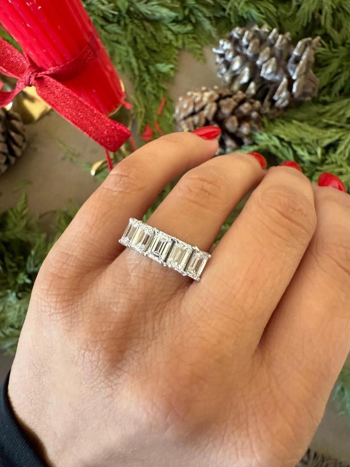 Banda de boda de diamante cultivado en laboratorio de corte esmeralda de lujo para mujer, joyería fina de compromiso, regalo nupcial, anillo de declaración de diseñador