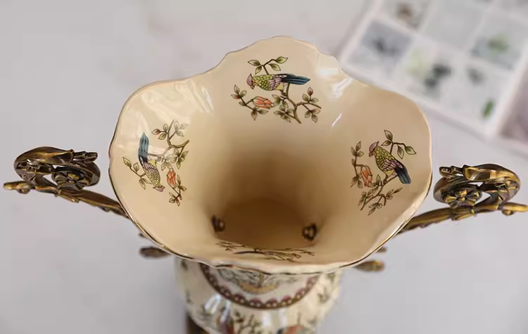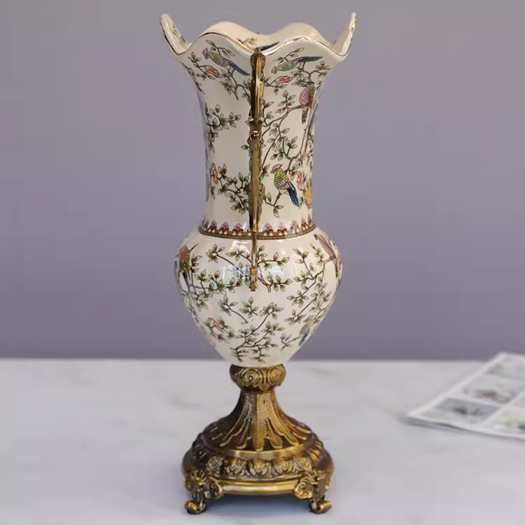 Decoración de entrada de lujo-Jarrón de cerámica europeo con asas