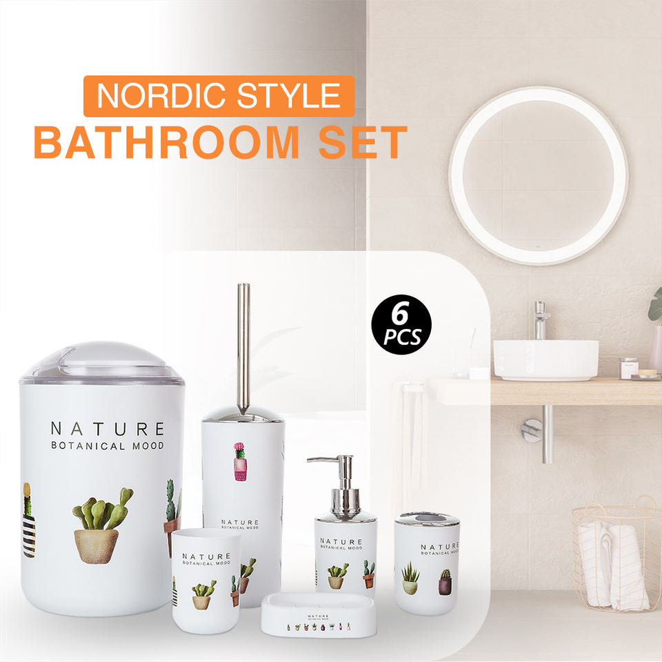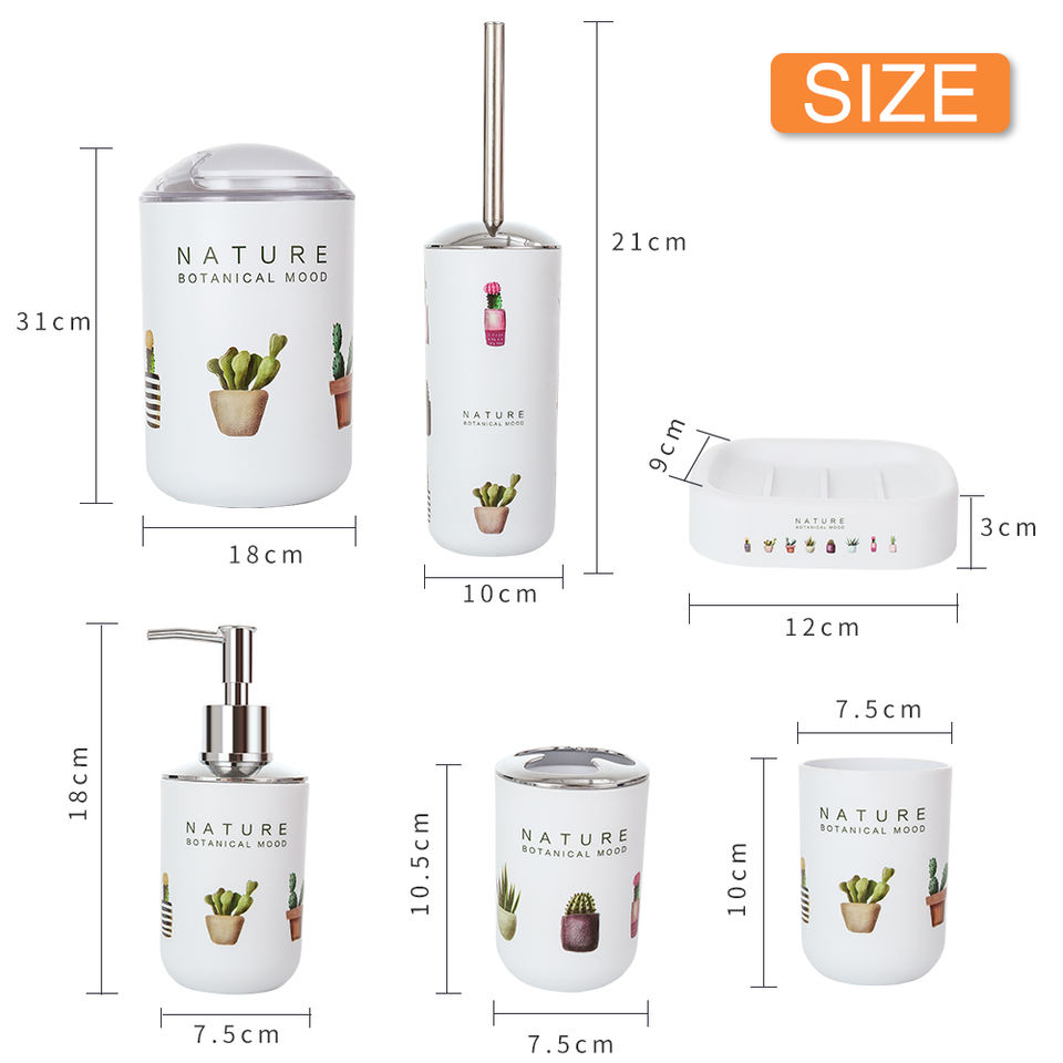 Product name:Printed Plastic 6-piece bathroom accessories set