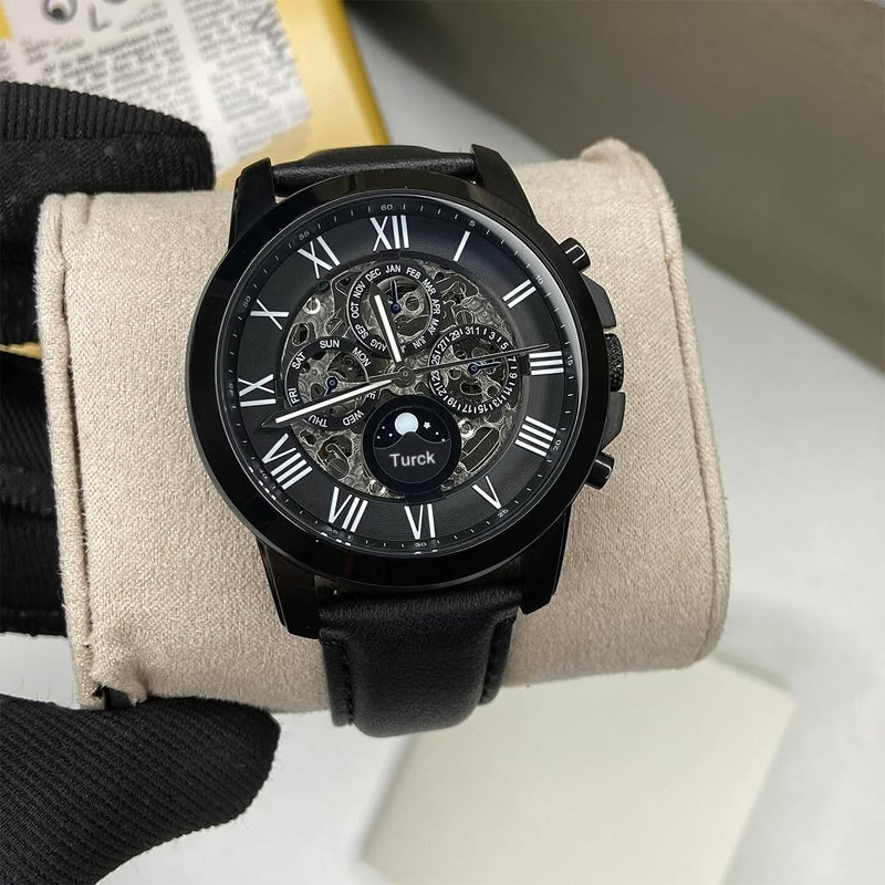 Reloj de lujo FOSSILl ME3027 automático con esqueleto de acero inoxidable para hombre, cronógrafo mecánico con puntero, correa de cuero de 24mm, 50M
