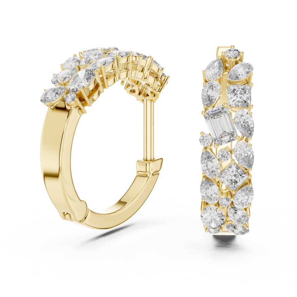 Pendientes de Aro de Diamantes Cultivados en Laboratorio de Lujo con Formas Variadas, Oro de 14K/18K y Plata 925, Diseño de Racimo Multiforma