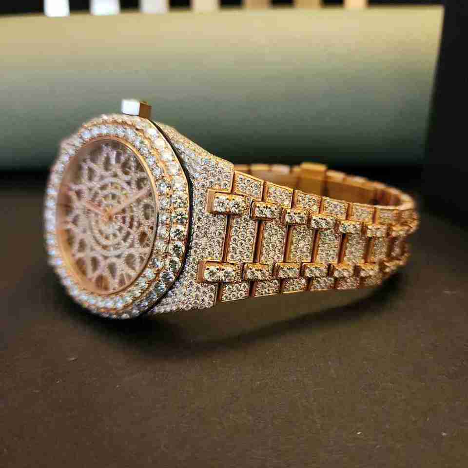 Reloj de Lujo de Acero Inoxidable Analógico con Esfera Redonda de Esqueleto, Diamantes Moissanite, Movimiento ETA Completamente Engastado, Unisex