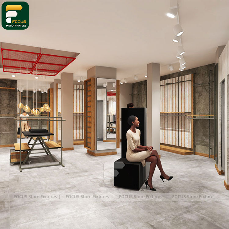 Mueble de Exhibición para Tienda de Moda de Lujo, Estante para Ropa, Vitrina, Estantería de Pared, Mostrador de Caja, Espejo, Armario