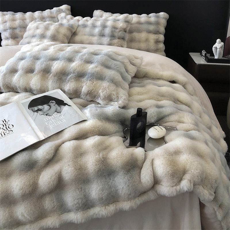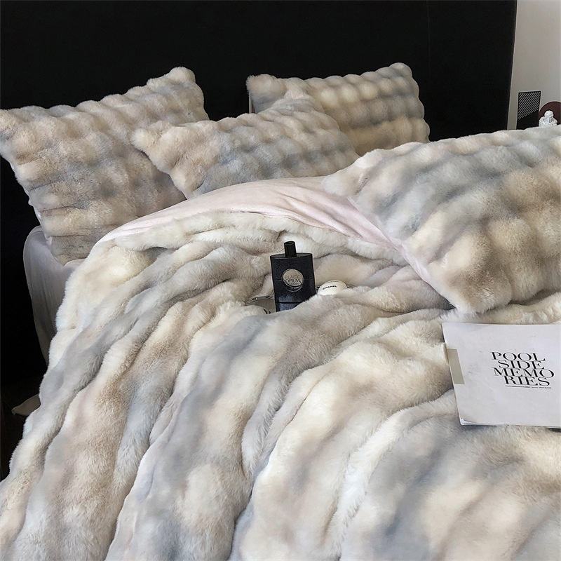 Juego de edredón de cuatro piezas de lujo, Sábana de retazos gruesa de terciopelo de leche de felpa de conejo para ropa de cama cálida de otoño e invierno