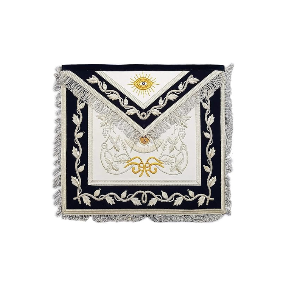 Delantal de maestro del pasado de masón de lujo, bordado en plata y oro sobre tela negra, insignia para coser, accesorio magnético