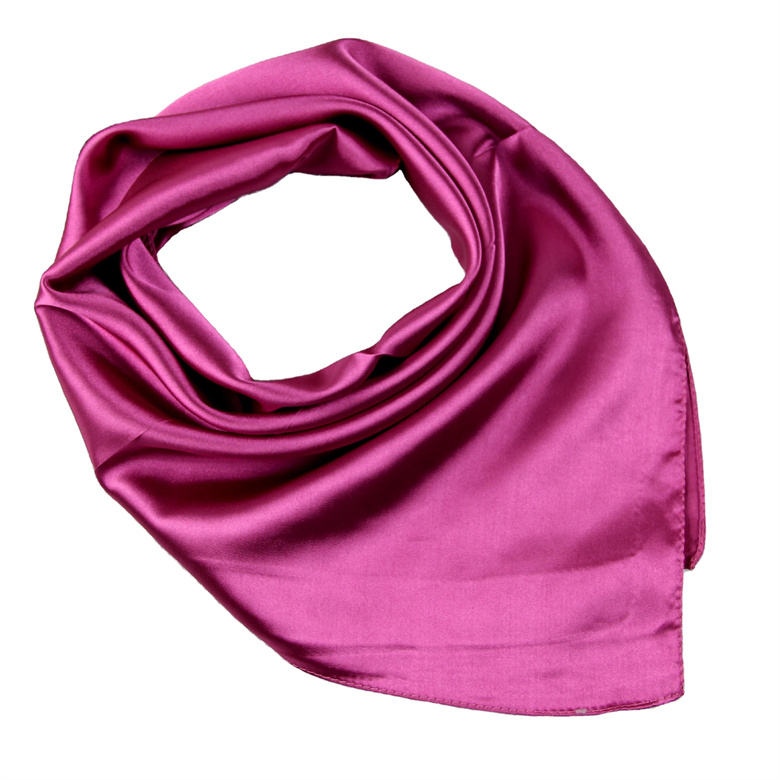 Bufanda de seda sólida fucsia magenta de lujo, cuadrada, imitación seda satinada.