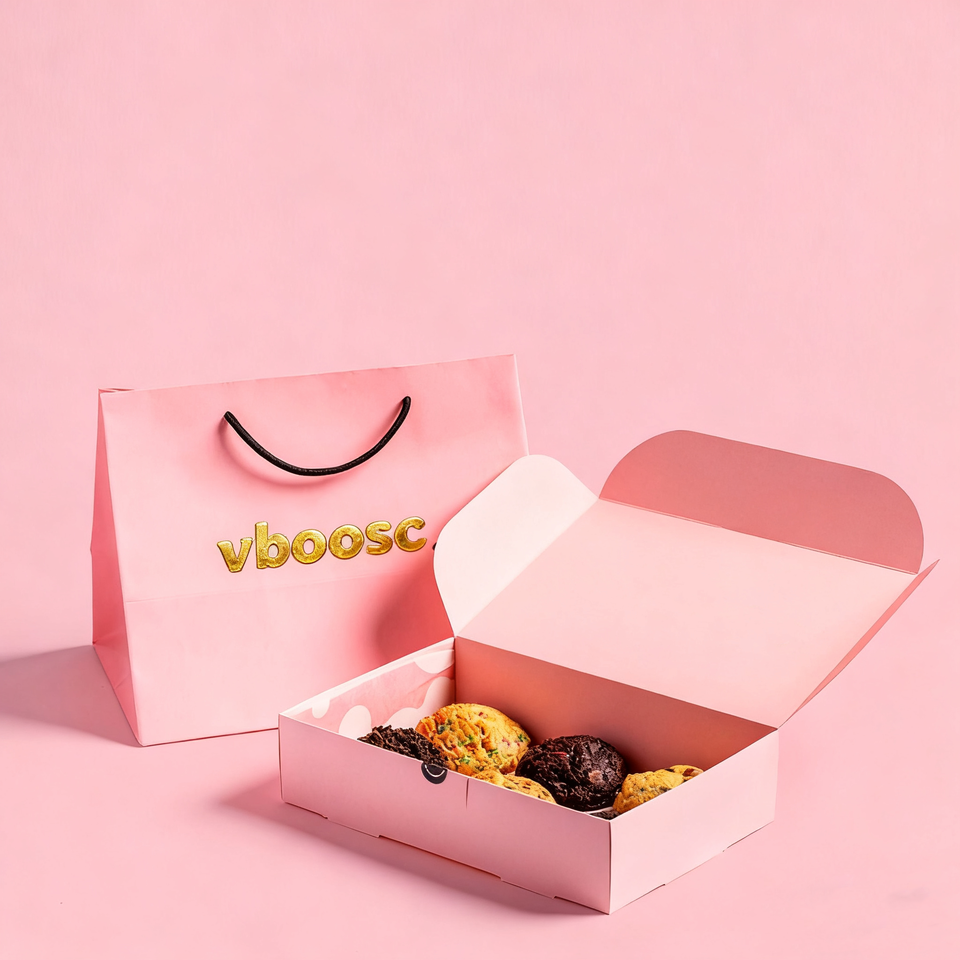 Cajas de pastel de regalo de lujo, embalaje de cartón bio degradable con bolsas, forma personalizada, caja de embalaje de regalo de galletas individuales para cupcakes