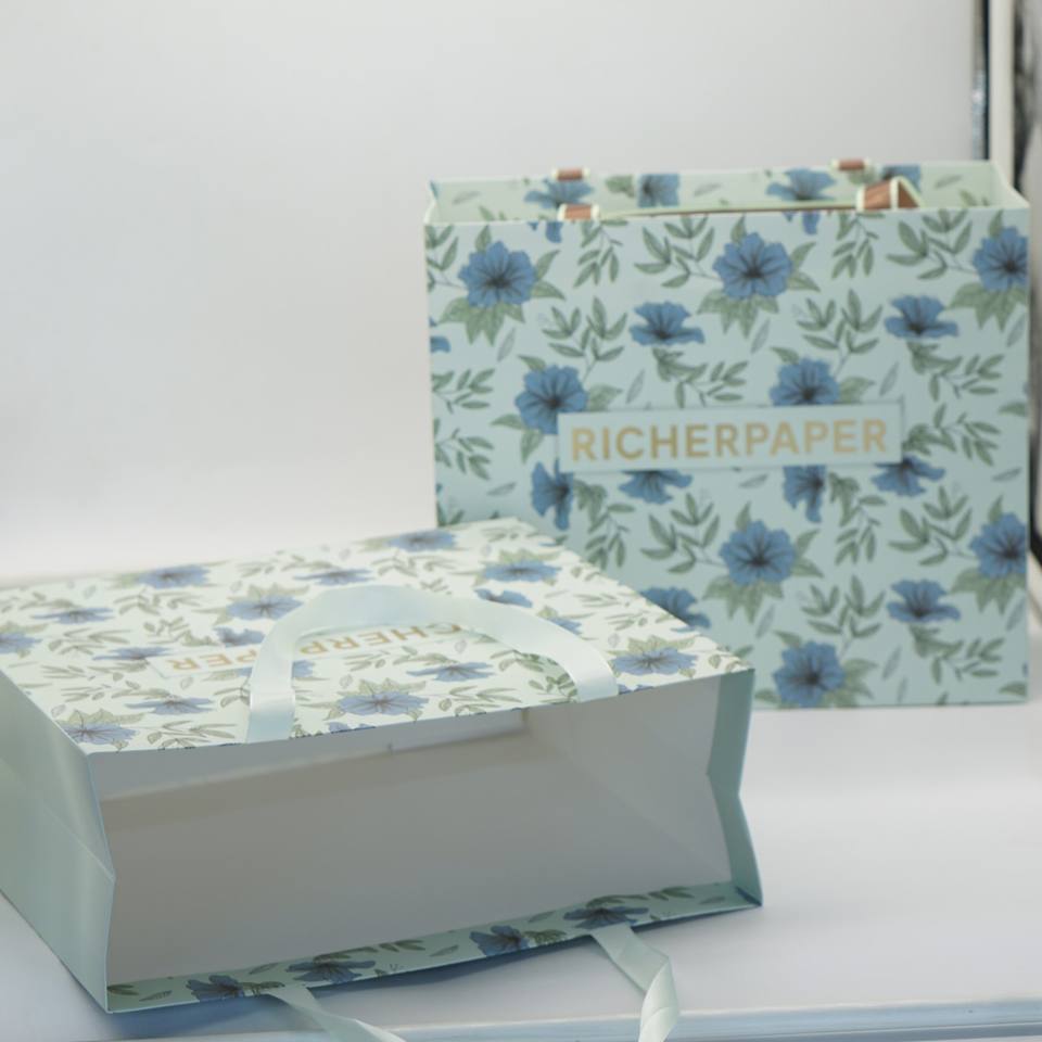Bolsa de Papel de Lujo con Impresión a Color Personalizada, Asa de Listón, Materiales Reciclados, Certificación ISO, para Empaque de Regalos de Boutique