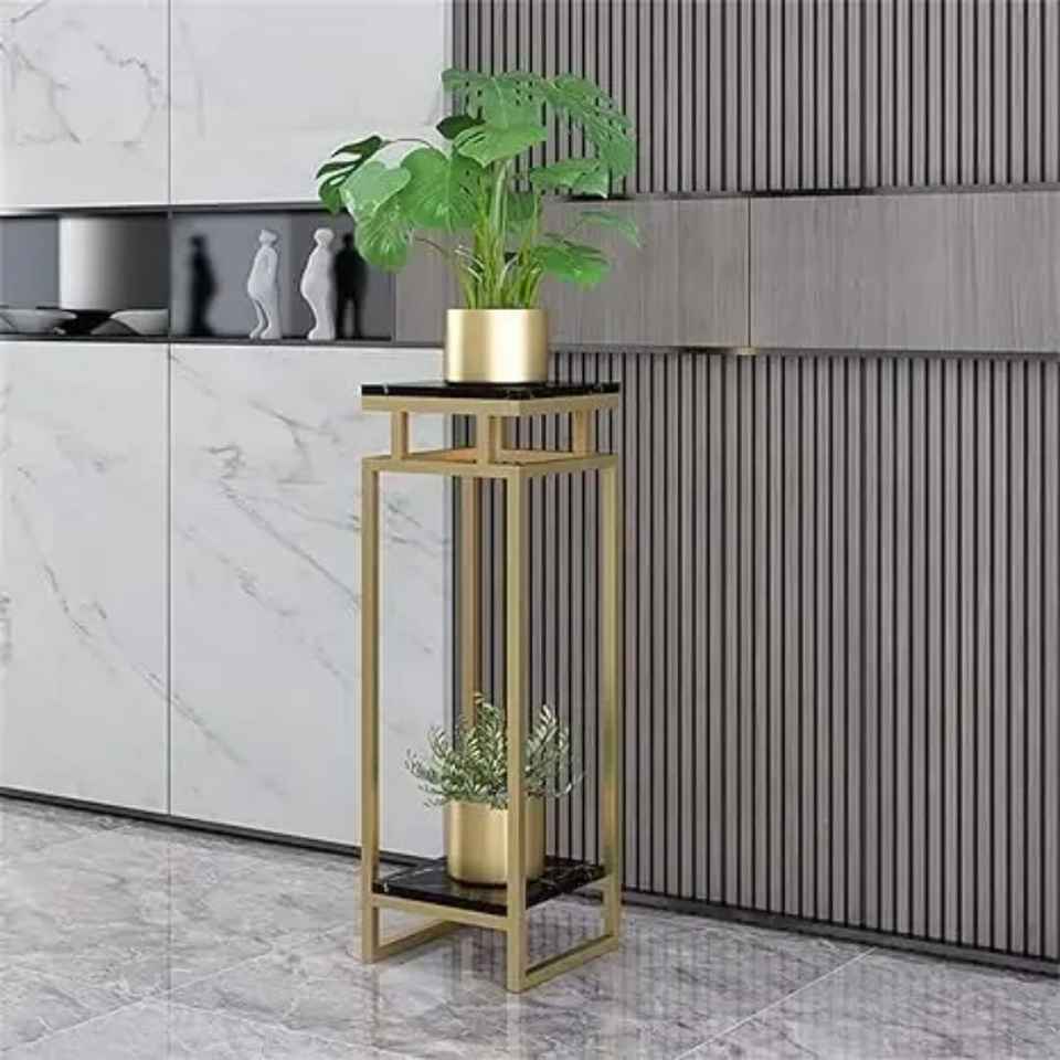 Mesa Auxiliar de Lujo con Marco Dorado y Tapa Blanca, Florero de Cristal con Rosas, Adorno Moderno para Sala de Estar con Silla Rosa y Planta Verde