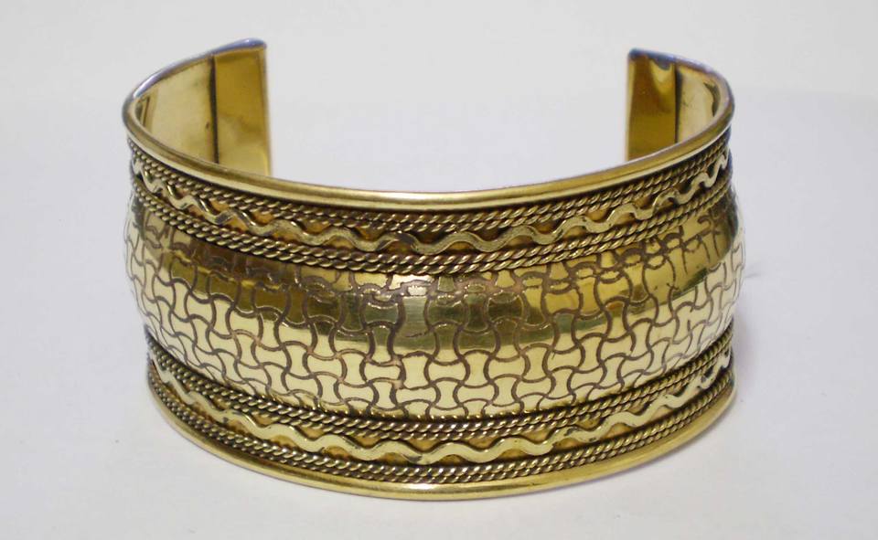 Brazalete de Cobre Chapado en Oro de Lujo para Mujer, Diseño Tradicional de Eslabones de Rompecabezas, Brazalete de Metal Sólido Hecho a Mano, Estilo Vintage