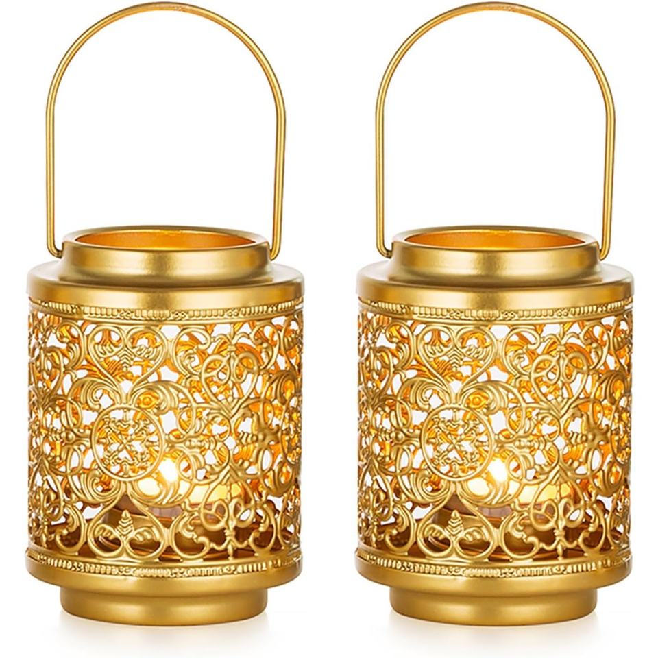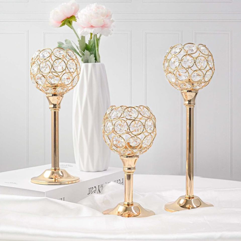 Vela votiva de metal y cristal chapada en oro de lujo para Navidad, Halloween, Pascua y decoración de boda, Decoración de mesa