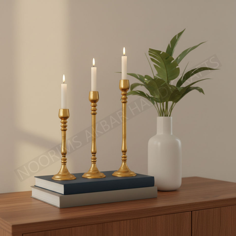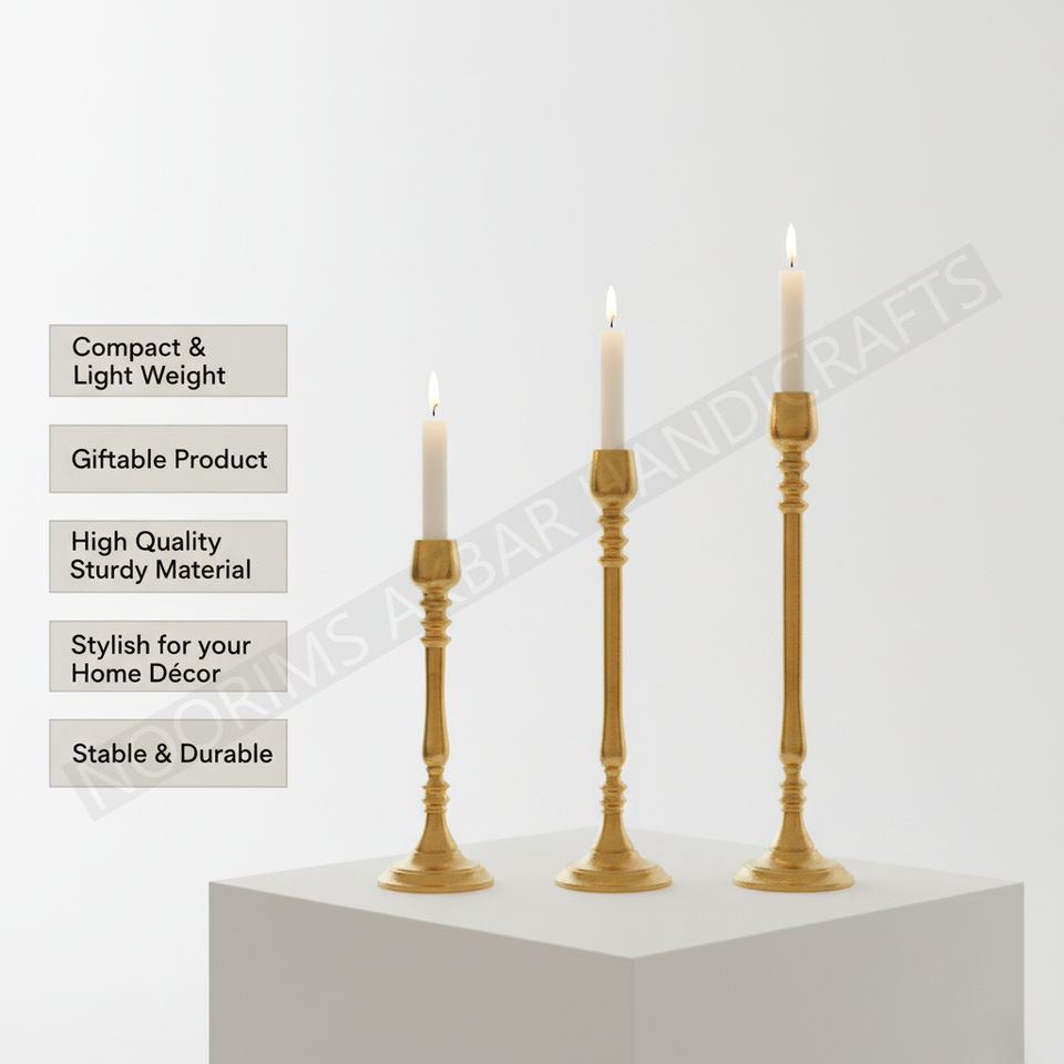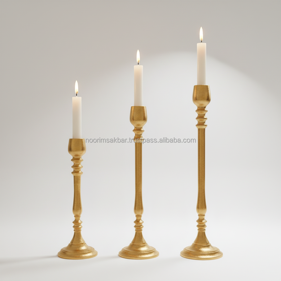 Juego de portavelas de aluminio trenzado chapado en oro de lujo de 3 centros de mesa de decoración de boda de Navidad para el hogar calidad de exportación