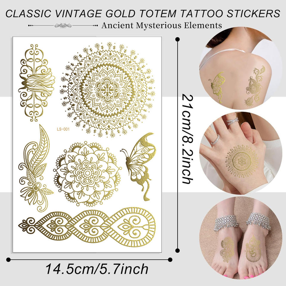 Golden temporary tattoos:Persian mandala tattoos