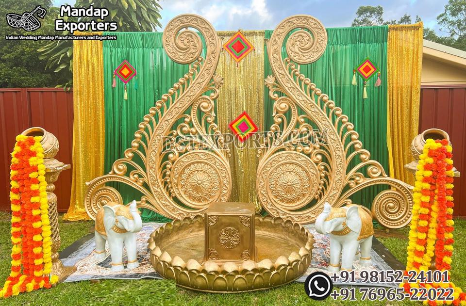 Luxury Gold Urli Set With Triangular Marigold Backdrop