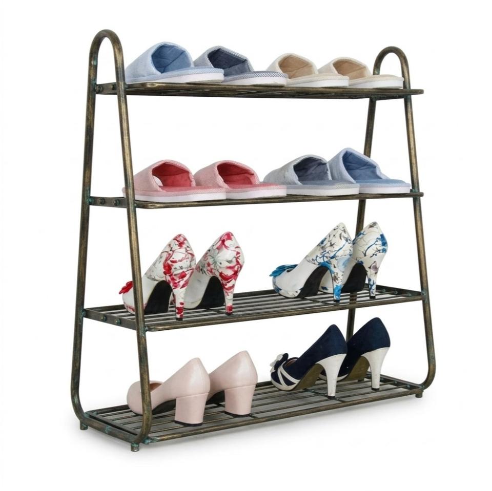 Zapatero de Hierro Forjado Dorado de Lujo, Estante Metálico Independiente para Zapatos, Organizador para Entrada y Solución de Almacenamiento que Ahorra Espacio en el Hogar