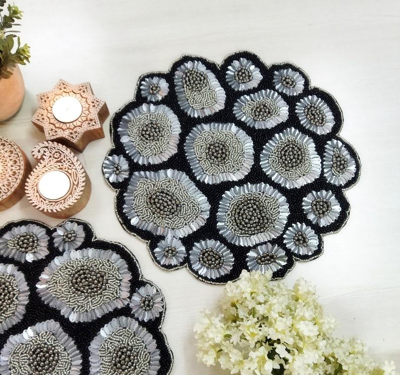 Mantel Individual de Lujo Hecho a Mano con Cuentas Doradas Sólidas, Ecológico, Decoración de Mesa, Mantel Individual a Precio Razonable para el Hogar, Bodas, Navidad