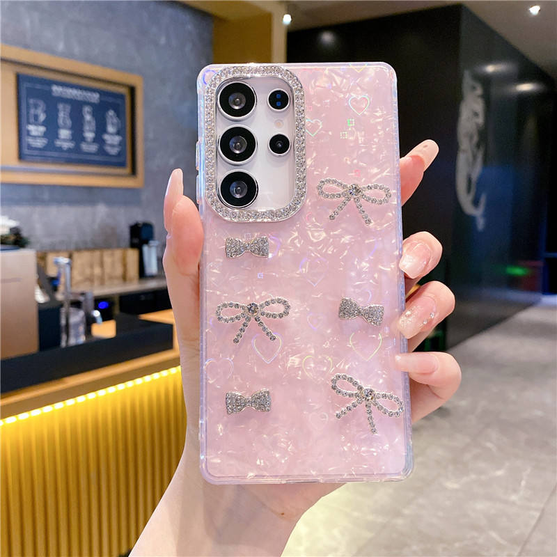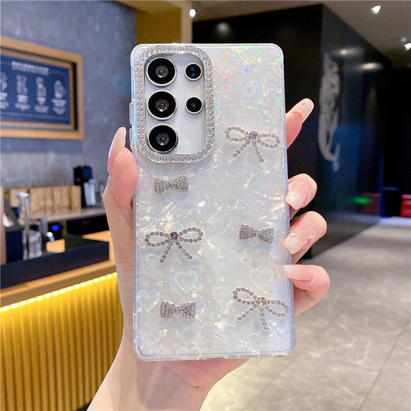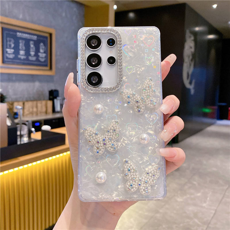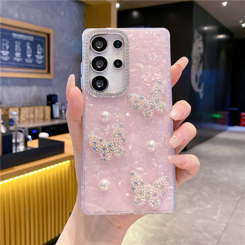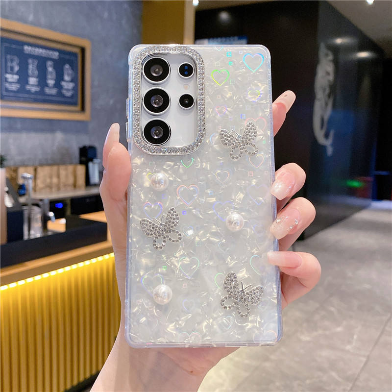 Linda funda de teléfono móvil para Samsung S24 S25 Fe S25 Edge Shell Pattern mariposa Diamond case Pear Design