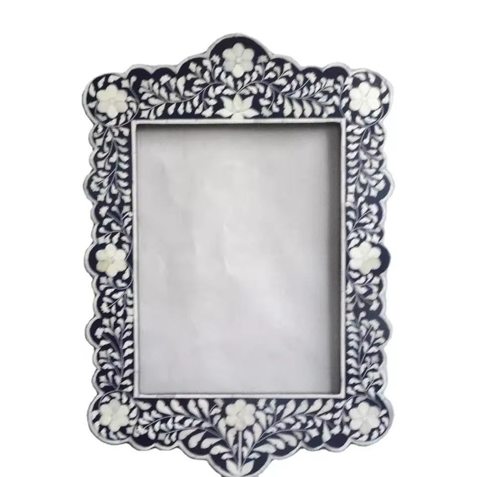 Espejo de lujo con incrustaciones de hueso verde con acento artístico de diseño floral blanco perfecto para la decoración del hogar y regalar ocasiones especiales