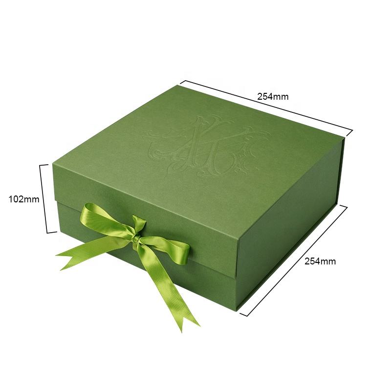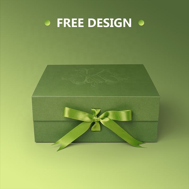 Caja de Regalo de Cartón Rígido con Tapa Verde de Lujo, Cajas Plegables Personalizadas con Cierre Magnético y Cinta