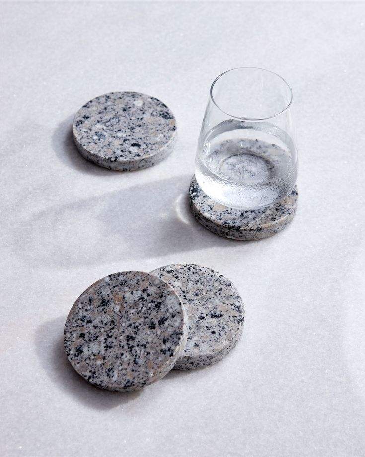 Juego de Posavasos Redondos de Granito Gris de Lujo para Bebidas con Diseño de Piedra Natural Premium, Perfecto para Mesas Modernas