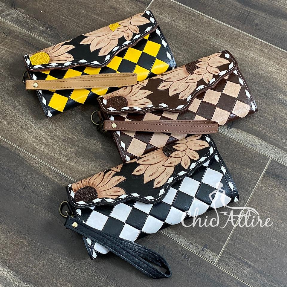 Product name:Hand Tooled Checkered Leather Wristlet Wallet
