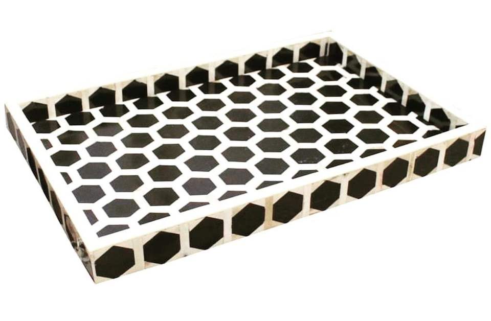 Bandeja de servicio decorativa con incrustaciones de hueso hechas a mano de lujo con opciones de color y tamaño personalizadas para una decoración elegante para el hogar y la Mesa