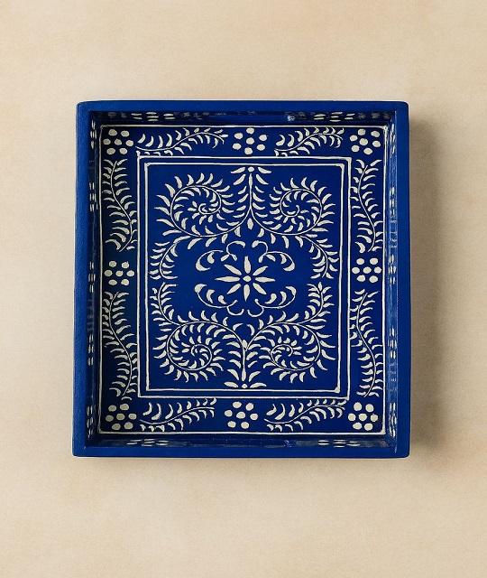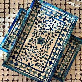 Bandeja Redonda de Servir de Lujo Hecha a Mano con Incrustaciones de Hueso y Patrón Floral Intrincado para Mesa de Centro Decorativa por f s i