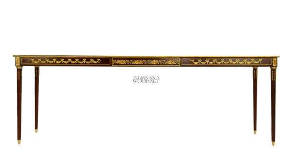 Mesa Consola Clásica de Lujo Hecha a Mano con Perfil Delgado, Elegantes Motivos Dorados y Patas Cónicas Refinadas