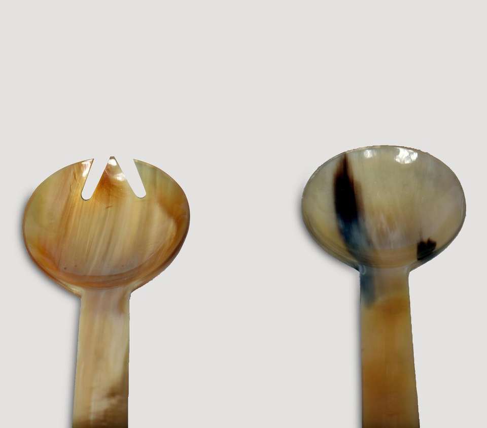 Juego de Cubiertos para Ensalada de Cuerno Natural Hecho a Mano de Lujo con Mangos Rectos Cónicos Únicos, Cuchara Grande para Mezclar y Tenedor para Servir