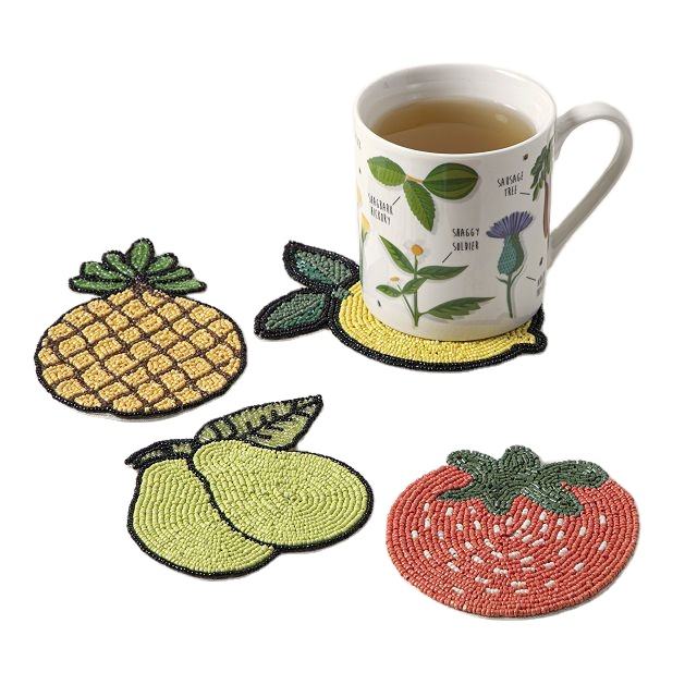 Lujo hecho a mano bordado con cuentas diseño de fruta cuatro posavasos elegante Premium decoración de mesa de comedor elegante único de la India