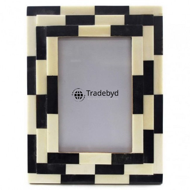 Marco de Fotos Creativo de Lujo Hecho a Mano con Incrustaciones de Hueso, Acabado Brillante, Diseño Ligero para Mesa, por Tradebyd