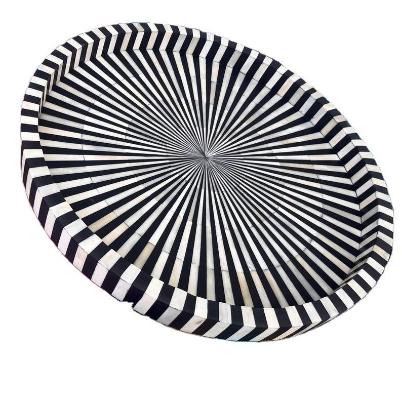 Bandeja de Lujo Hecha a Mano con Incrustaciones de Hueso para Servir, Decoración del Hogar, Mesa de Centro, Comedor, Regalo, Ecológica, Calidad Premium, BY MAC