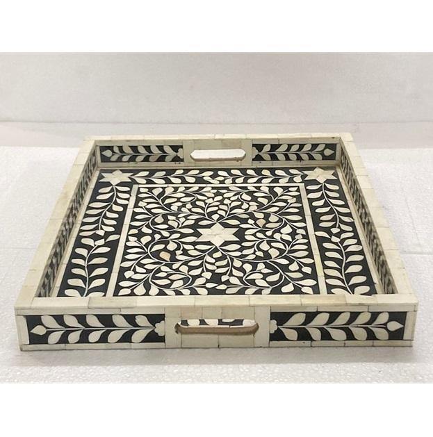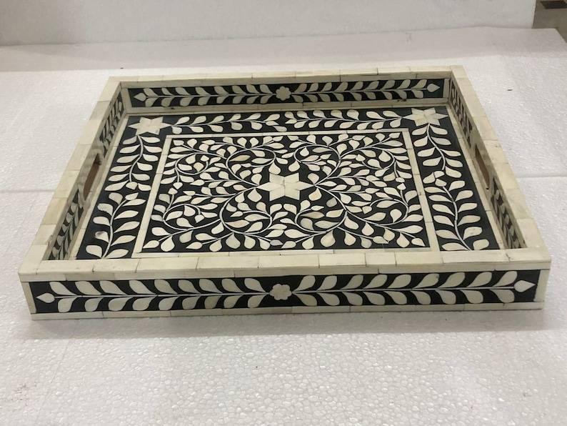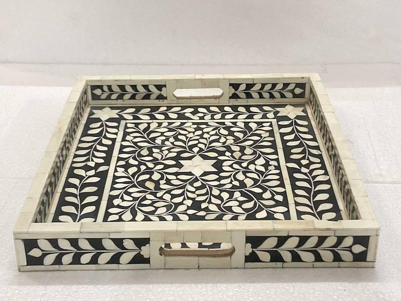 Bandeja de lujo hecha a mano con incrustaciones de hueso para servir, decoración del hogar, mesa de centro, comedor, regalo, ecológica, calidad premium
