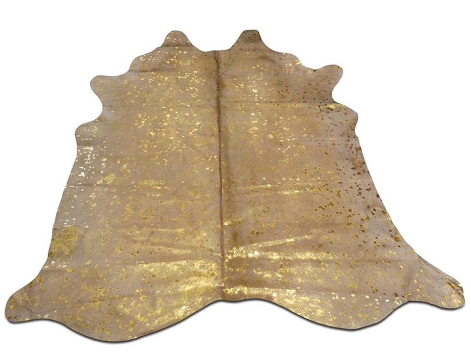 Alfombra de piel de vaca hecha a mano de lujo con alfombra de cuero Devore metálico dorado para interiores y exteriores para decoración de hogar y oficina