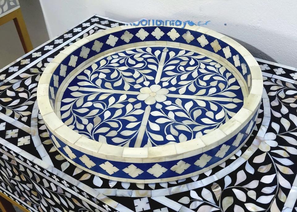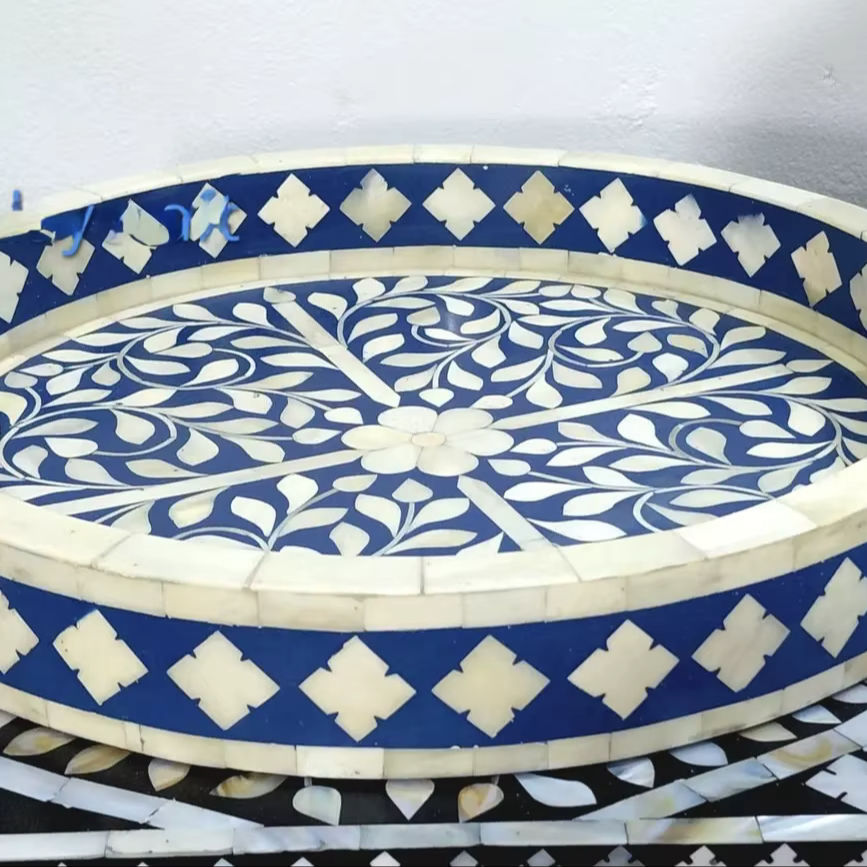 Bandeja Feng Shui de Lujo Hecha a Mano con Incrustaciones de Hueso Ecológicas, Diseño Decorativo Elegante, Calidad Premium para Servir en el Hogar y la Cocina