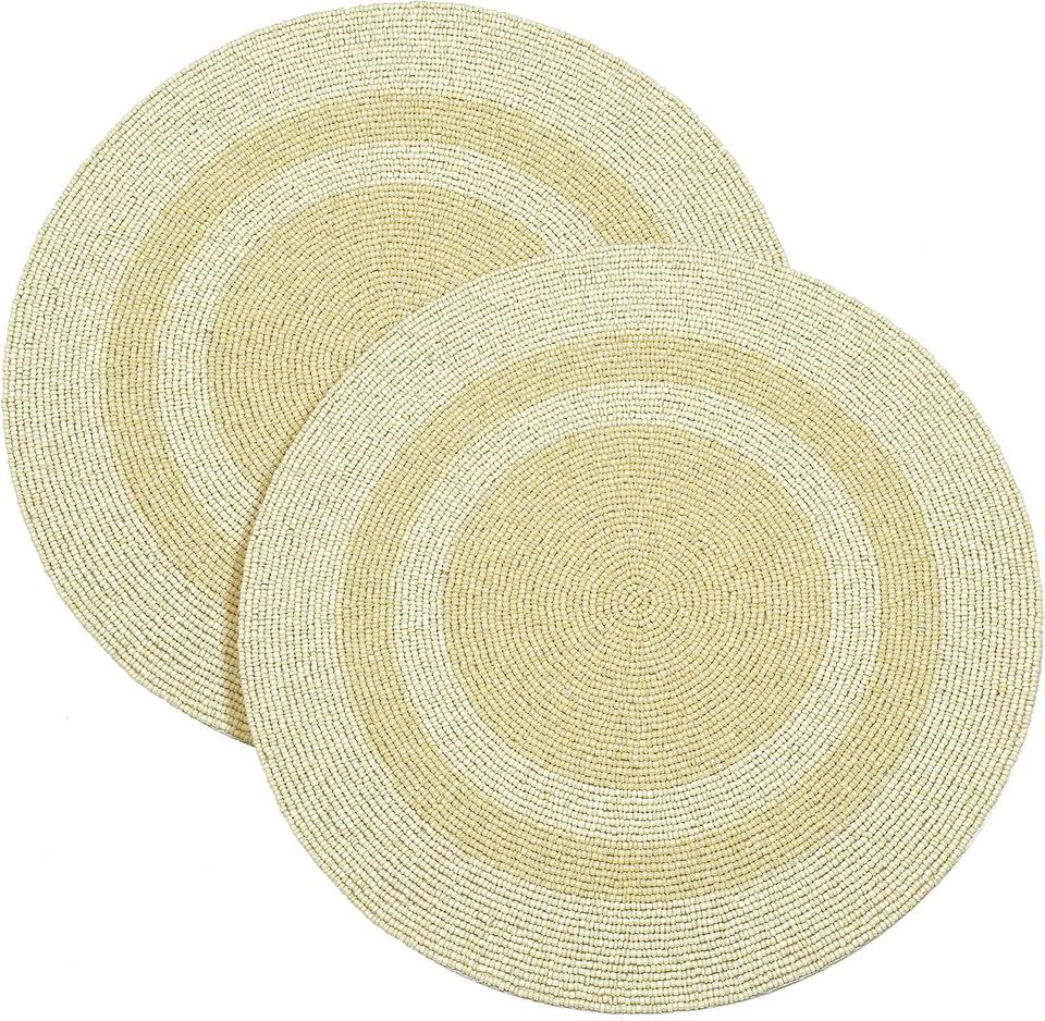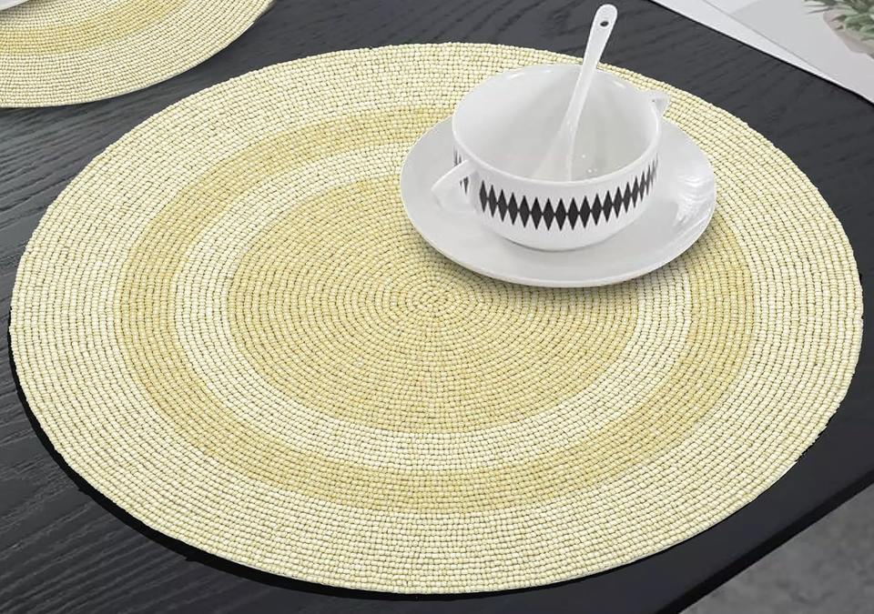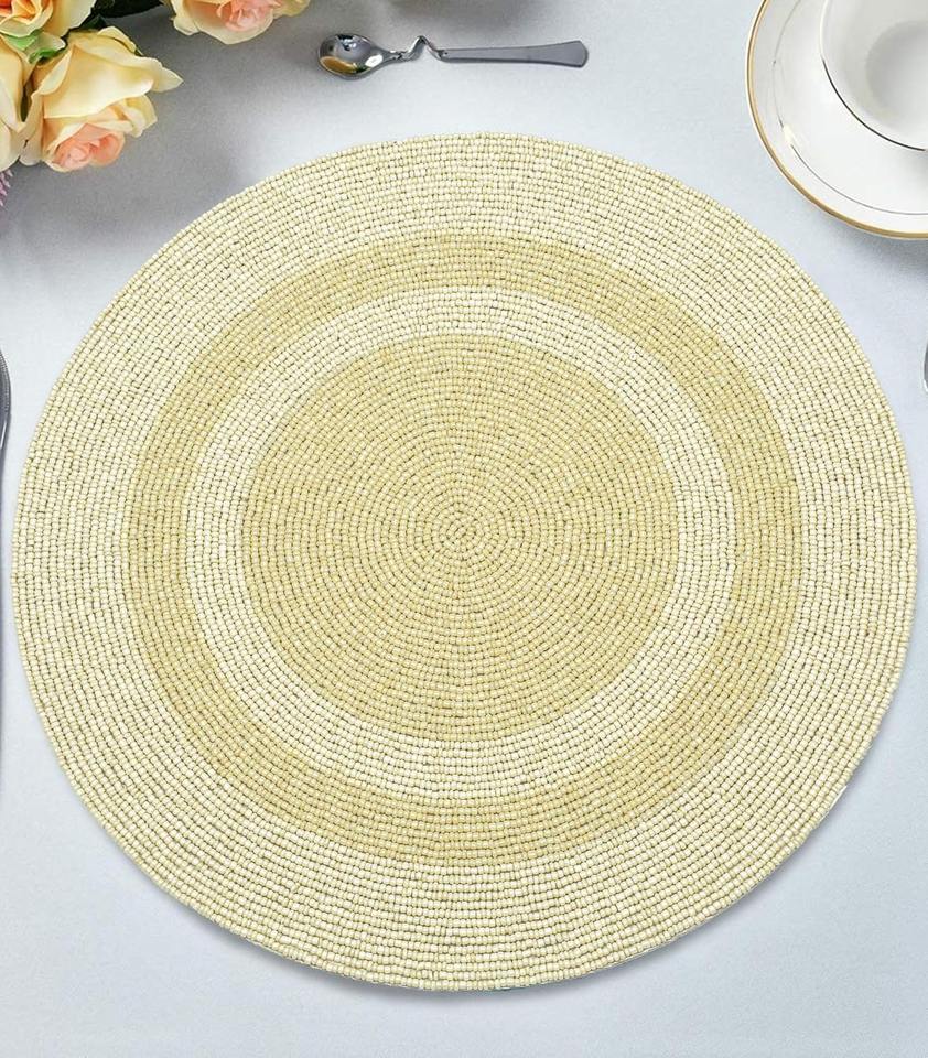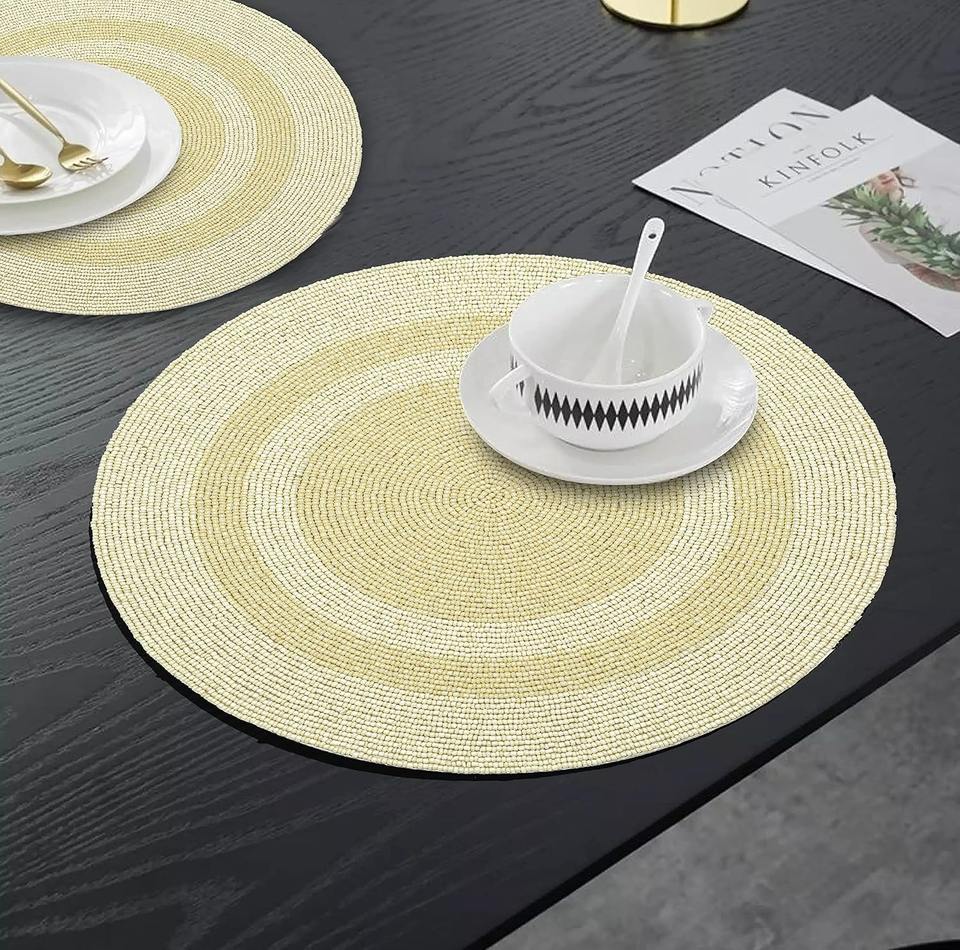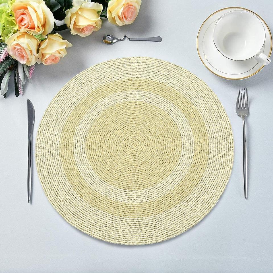 Mantel Individual Redondo de Lujo Hecho a Mano con Bordado y Cuentas Doradas, Ecológico, para Uso en Mesa de Comedor, Bodas y Hogar