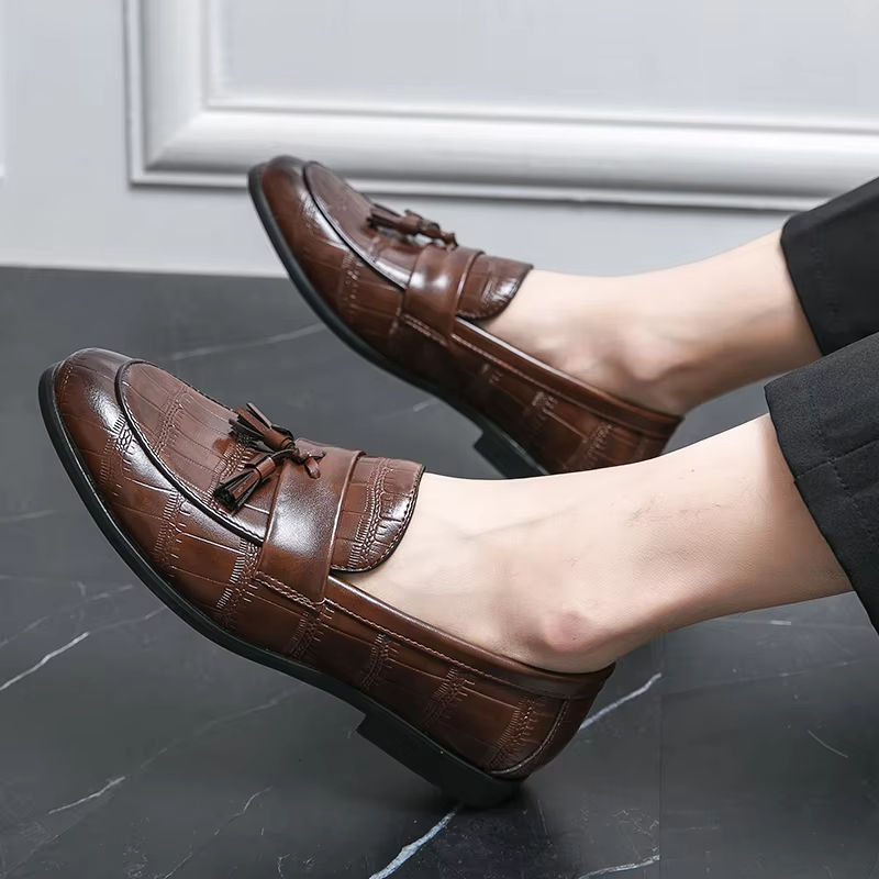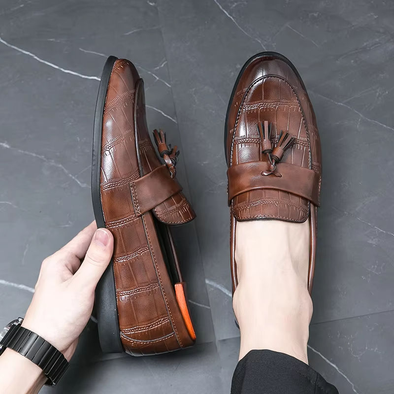 Zapatos Mocasines de Cuero Hechos a Mano de Lujo, Zapatos de Vestir Casuales de Negocios Sin Cordones con Amortiguación, Cómodos y Transpirables, de Piel de Vacuno Pura