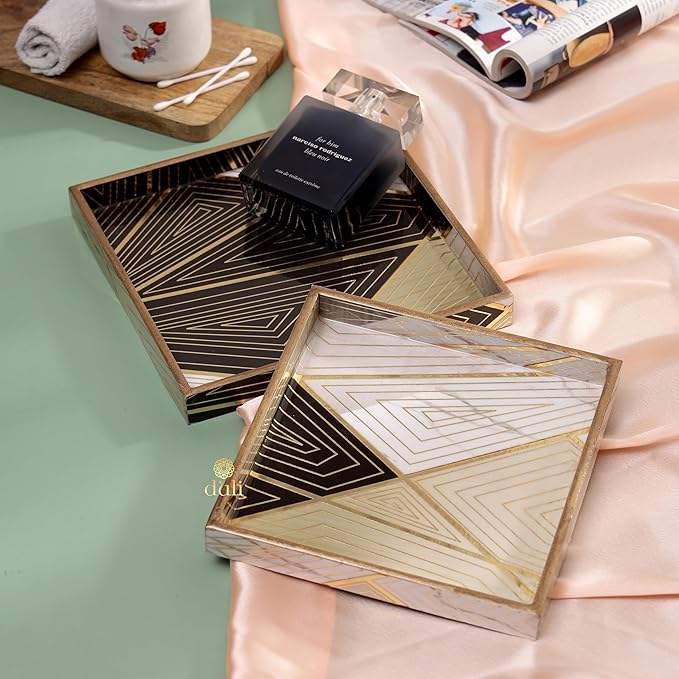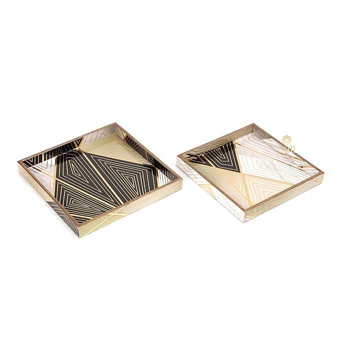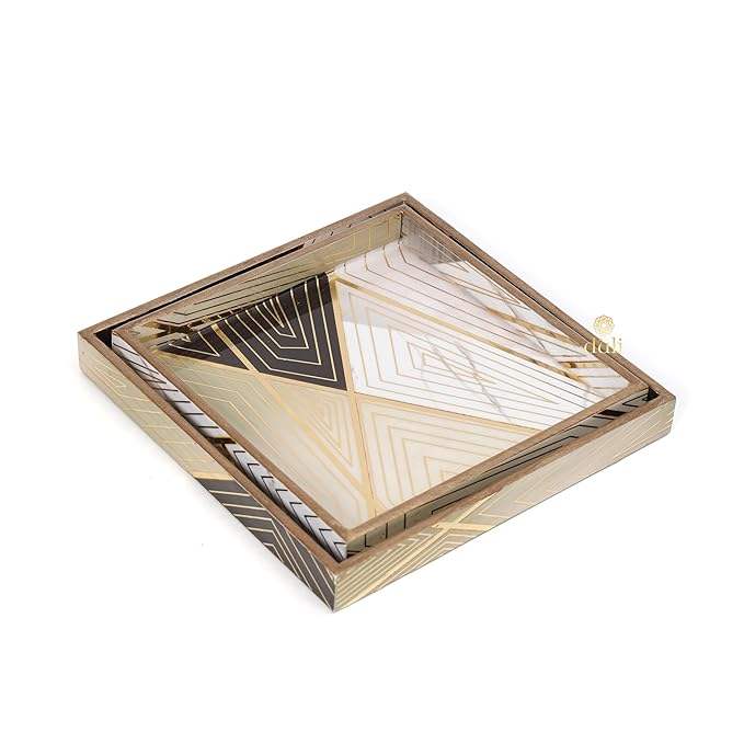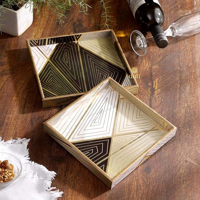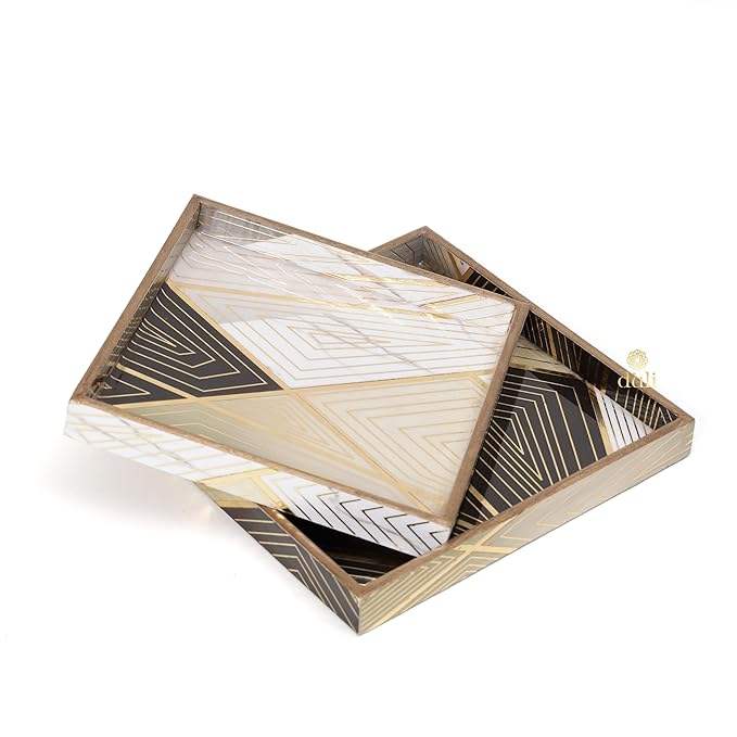 Juego de bandejas cuadradas de madera MDF hechas a mano de lujo, 2 elegantes bandejas de madera decorativas para cocina y comedor recubiertas de esmalte