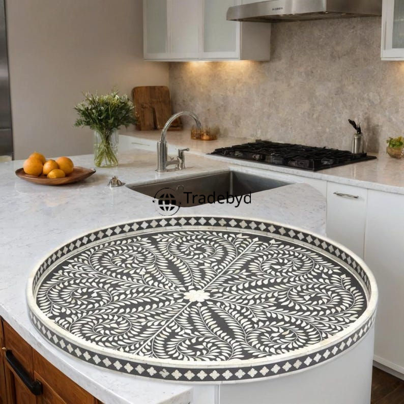 Bandeja de Servir Móvil de Lujo Hecha a Mano con Incrustaciones de Hueso, Decoración Elegante para Mesa de Centro por Tradebyd