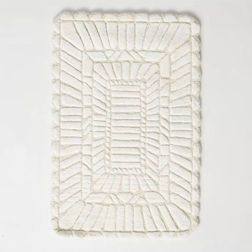 Alfombra de lana crema rectangular hecha a mano de lujo, alfombra con textura abstracta suave para sala de estar, dormitorio, decoración del hogar de alta calidad