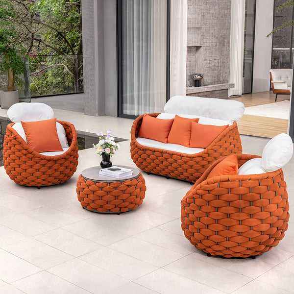 Juego de Sofás de Mimbre Sintético de Lujo, Tejido a Mano, Resistente a los Rayos UV, Moderno, Ecológico, Impermeable, para Exteriores, con Cojines, para Jardín, Villa, Patio, Hotel, Parque |